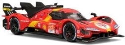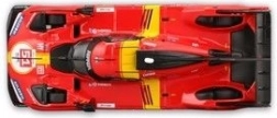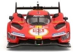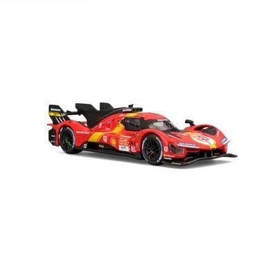 Este detallado modelo die-cast reproduce fielmente el prototipo de la categoría LMH Ferrari 499P, que triunfó en la legendaria carrera de las 24h de Le Mans 2023. Sus proporciones realistas, las líneas definidas de la carrocería y los elementos de competición auténticos lo convierten en una pieza atractiva para la vitrina.
