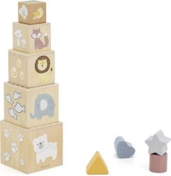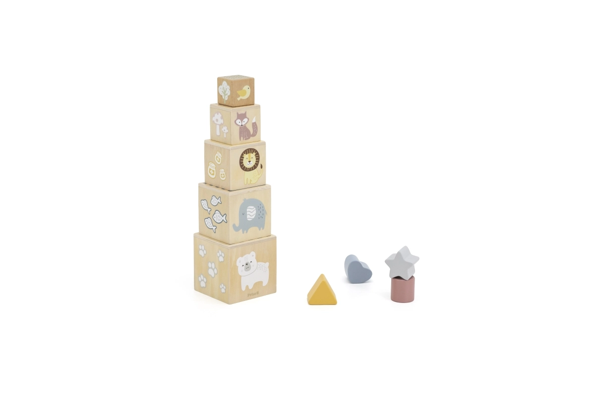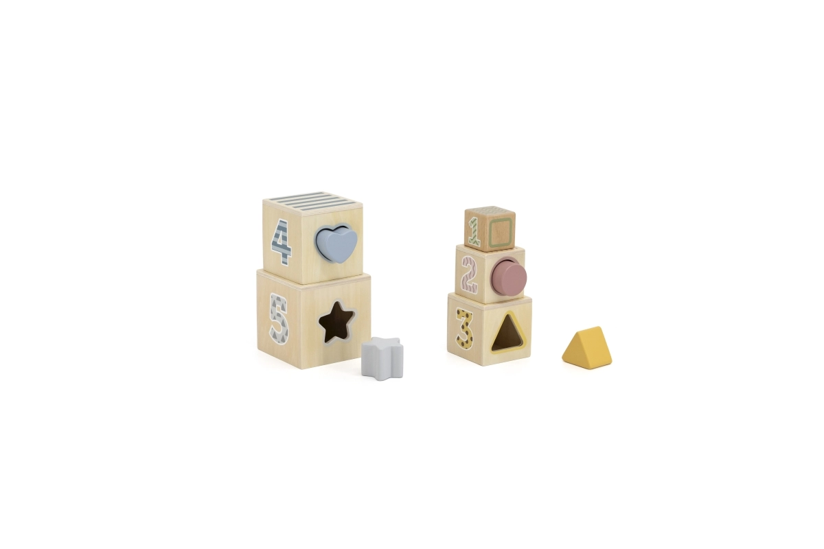 Cinco cubos y formas correspondientes enseñan a los niños a comprender el tamaño, los números y la percepción espacial. El set fomenta el pensamiento lógico y la motricidad fina.