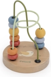 Desplazar las cuentas por los arcos metálicos desarrolla la destreza de los dedos, la concentración y la coordinación bimanual.