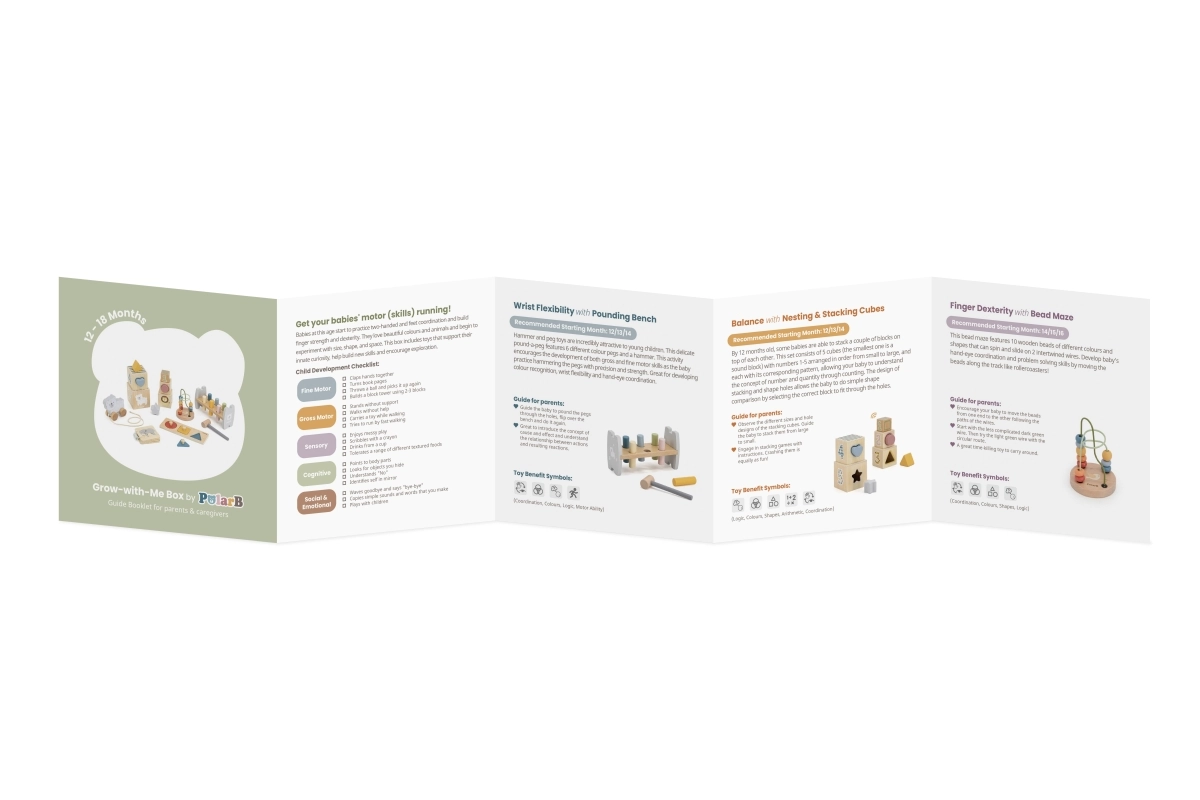 Este set de juguetes de madera PolarB, pensado para 12–18 meses, desarrolla habilidades clave de forma lúdica. Los niños practican el agarre, la precisión de movimientos y el pensamiento lógico mientras aprenden a diferenciar colores, formas y tamaños. Los suaves tonos pastel y los adorables motivos de animalitos motivan de manera natural a explorar.