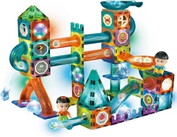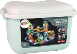 Descubre un set de construcción creativo que combina bloques magnéticos y una pista de canicas luminosa en uno. Gracias a los elementos LED y a las canicas luminosas, el juego es aún más divertido; desarrolla la motricidad fina, la creatividad y fomenta el pensamiento lógico. En una práctica caja con cierre encontrarás un total de 150 piezas, incluido manual, figuras y pegatinas.