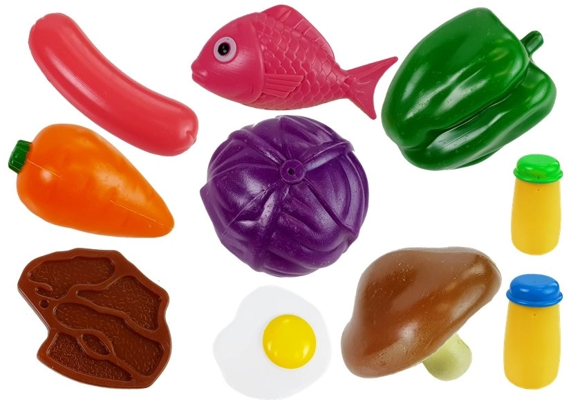 El set también incluye distintos tipos de alimentos que inspiran un juego imaginativo y ayudan a aprender los nombres y formas de los alimentos.