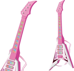 Divertida guitarra eléctrica infantil en color rosa que ofrece efectos de luz, melodías pregrabadas y correa para el hombro para tocar cómodamente de pie. Su diseño ligero y dimensiones adecuadas para manos pequeñas fomentan la creatividad, el ritmo y los primeros pasos en el mundo de la música.