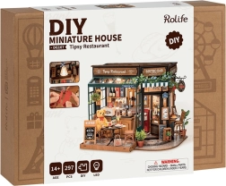 Descubre el encanto de la miniatura DIY Tipsy Restaurant, que trae la atmósfera de un acogedor restaurante directamente a tu hogar. Este rompecabezas creativo desarrolla la creatividad, la motricidad fina y el pensamiento espacial.