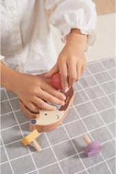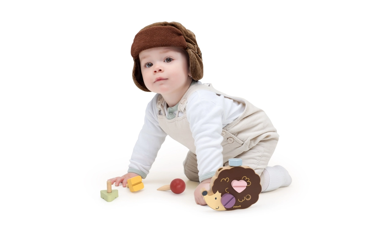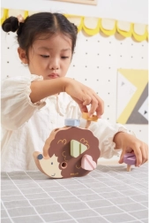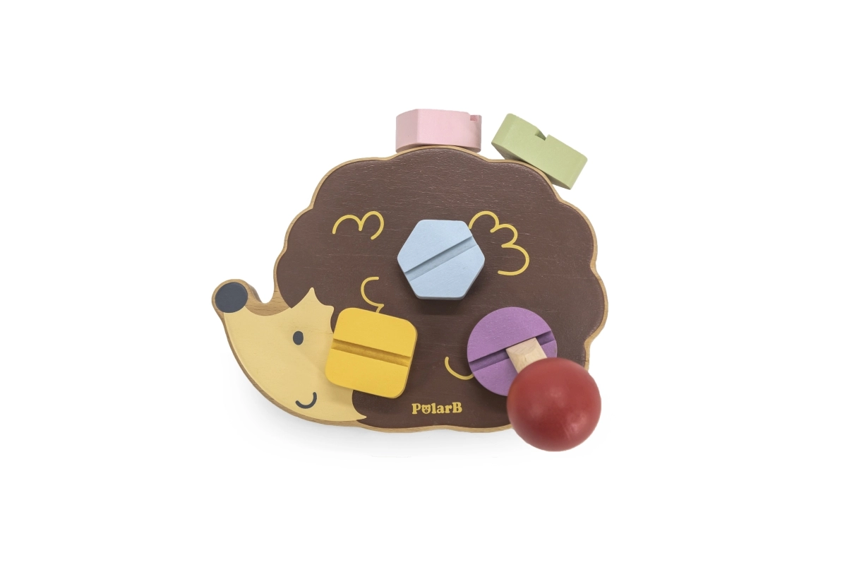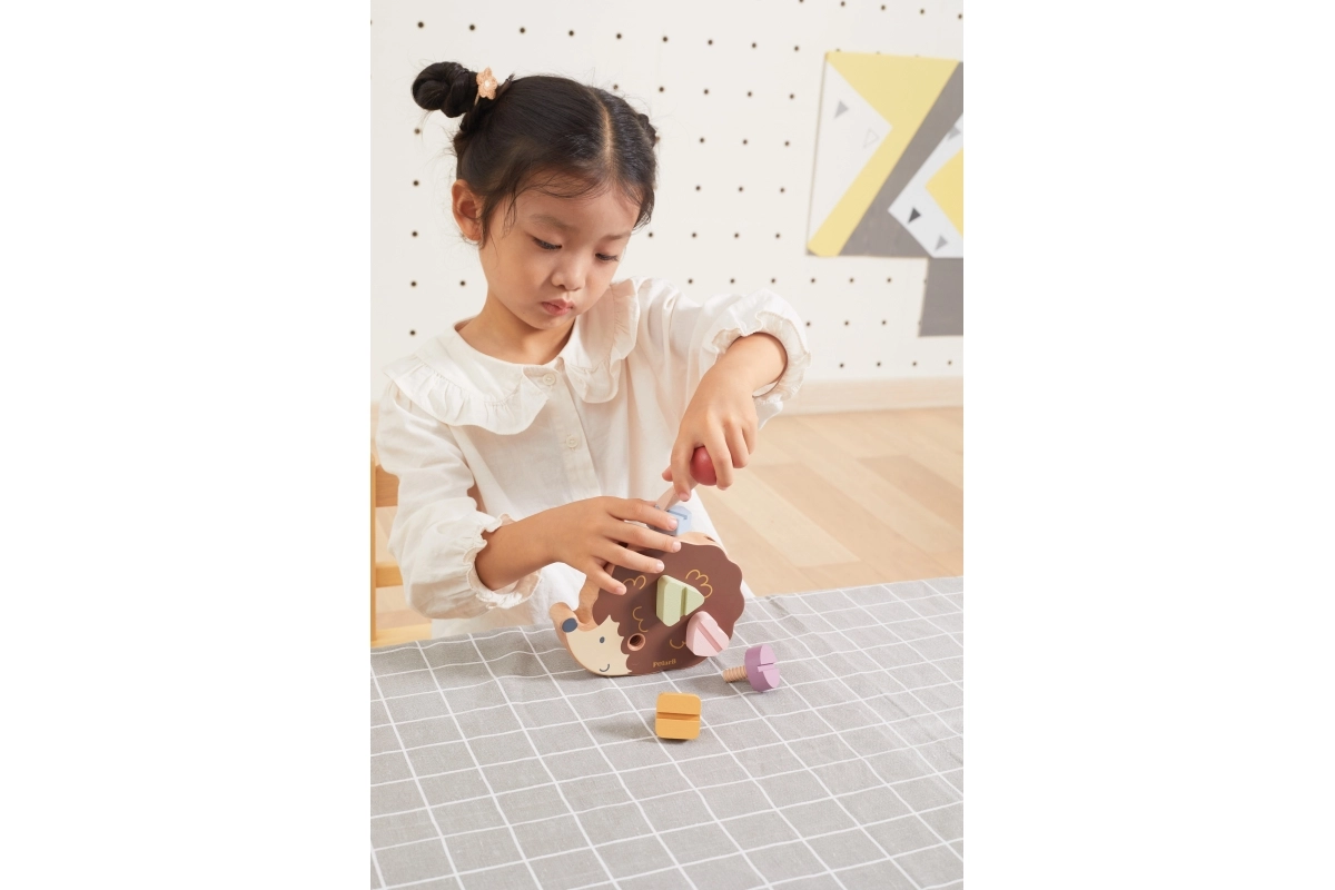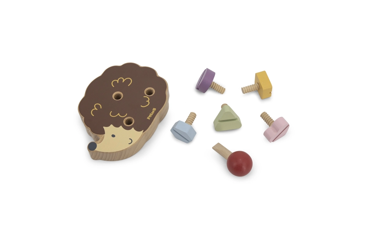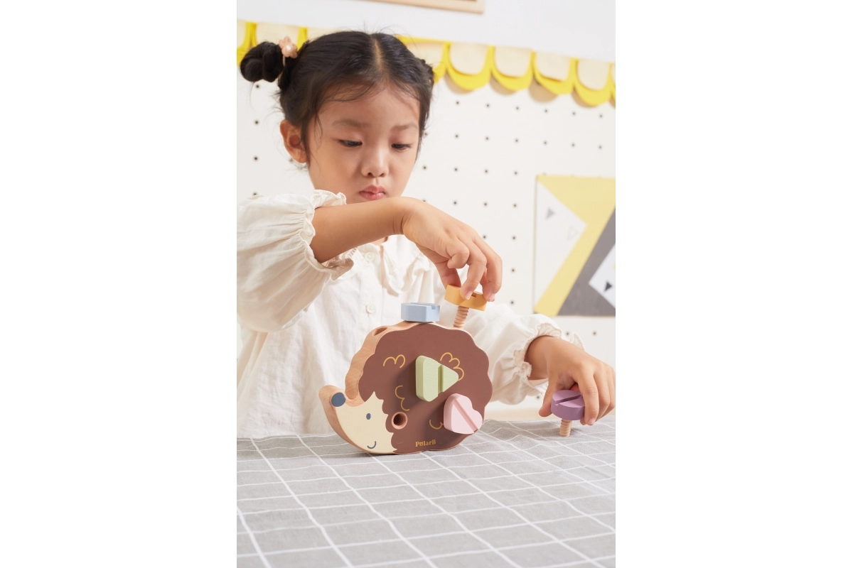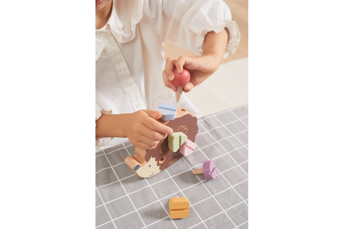 El erizo de madera permite a los niños entrenar la motricidad fina mediante tornillos de diferentes colores y formas.