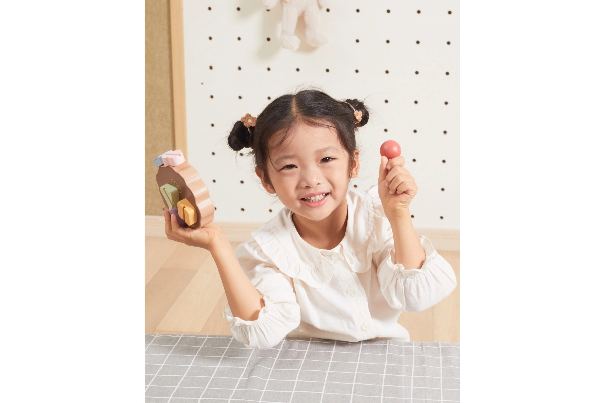 El juguete desarrolla la creatividad y el pensamiento lógico de los niños. Les enseña a reconocer formas y colores.