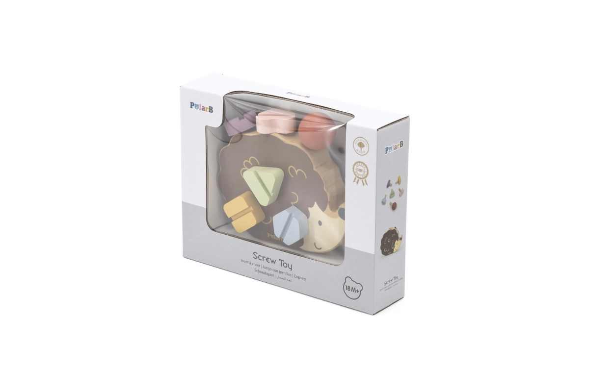 VIGA PolarB Juguete de madera Erizo con tornillos ofrece una combinación única de juguete y material didáctico. El erizo, bellamente elaborado, permite a los niños entrenar sus habilidades motoras con cinco tornillos de diferentes colores y formas. Cada tornillo puede insertarse fácilmente en el erizo con un destornillador especial incluido en el set.