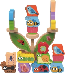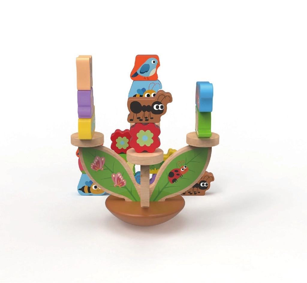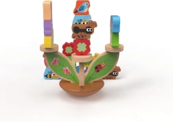 El juego de equilibrio de madera Prado convierte el aprendizaje en diversión. Los niños colocan por turnos las coloridas piezas sobre una base estable con forma de hojas y tratan de mantener todo el prado en equilibrio. El juego desarrolla de manera natural la motricidad fina, la coordinación ojo–mano y el pensamiento lógico, a la vez que entrena la paciencia y la concentración.