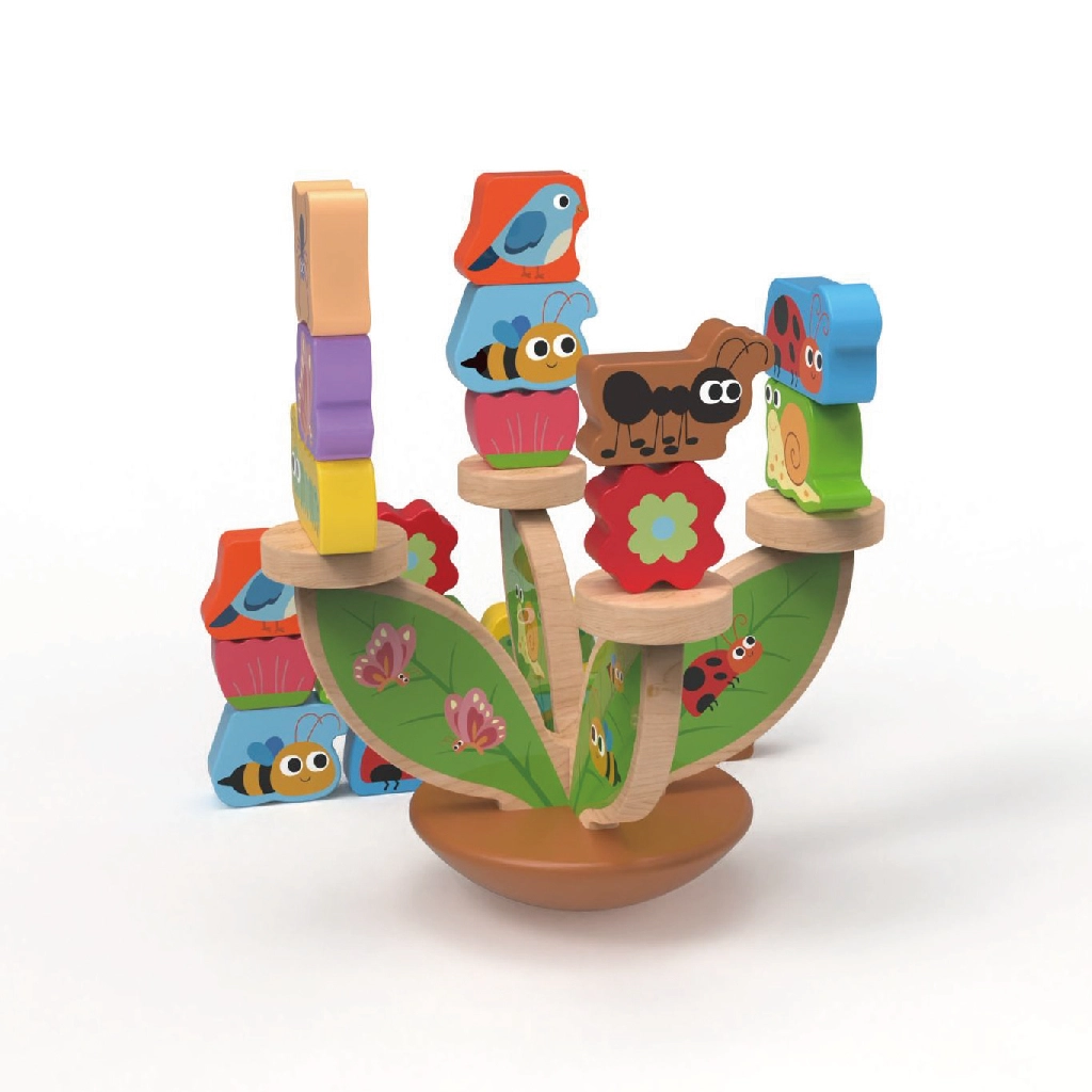Colocar piezas de distintos tamaños en la base de equilibrio enseña a los niños precisión, concentración y coordinación de movimientos, de forma divertida y sin pantallas.