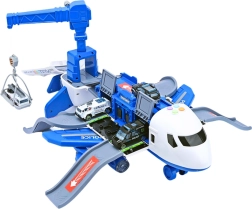 Al desplegarse, el avión se convierte en una estación policial móvil con rampas, espacios de almacenamiento y una plataforma para “lanzar” el cochecito para una intervención rápida. Incluye 3 vehículos policiales, una grúa giratoria 360° con rueda de control y un set de señales, conos y otros accesorios para construir tu propia ciudad y carreteras.