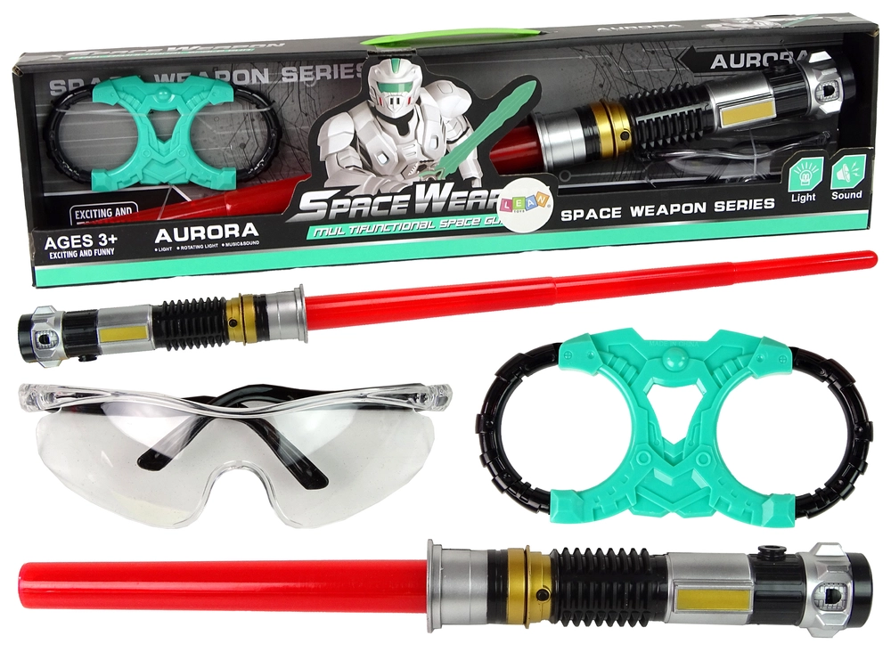 El set está fabricado en plástico de alta calidad, cumple con la certificación CE y viene en una atractiva caja de regalo con motivo espacial. La espada funciona con 3× AAA 1,5 V (pilas no incluidas).