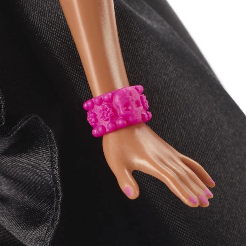 Barbie continúa su edición Día de Muertos con un conjunto sofisticado y ricamente adornado que honra las tradiciones.