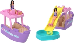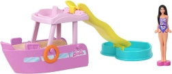 Descubre la magia del mundo MINI BARBIE LAND con un adorable mini barco que en un instante se transforma en un divertido parque acuático. El set incluye un barco con tobogán extraíble y una piscina turquesa en forma de corazón, además de una mini muñeca. Ideal para viajar, coleccionar y jugar de forma creativa. Dimensiones compactas, detalles cuidados y un tobogán funcional garantizan horas de diversión imaginativa.