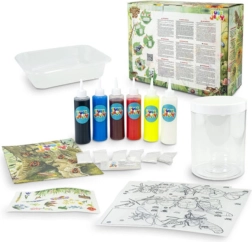Puedes guardar los insectos terminados en un acuario con cristales de agua, que también se incluyen en el set. Decora el acuario fácilmente con las pegatinas adjuntas. Un póster educativo te presentará datos fascinantes sobre los insectos.