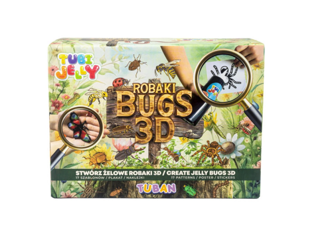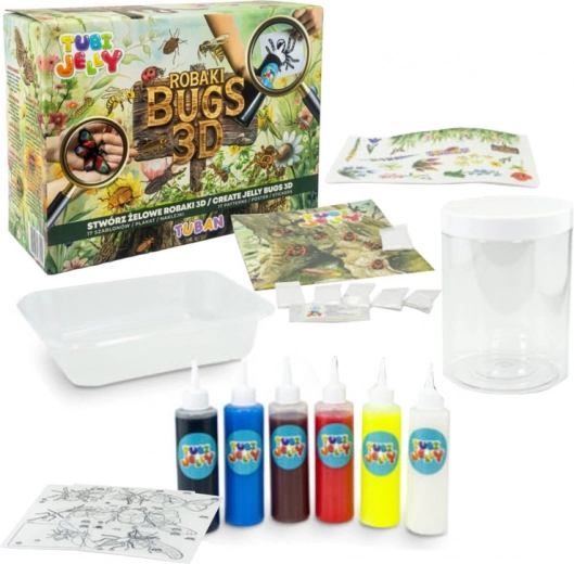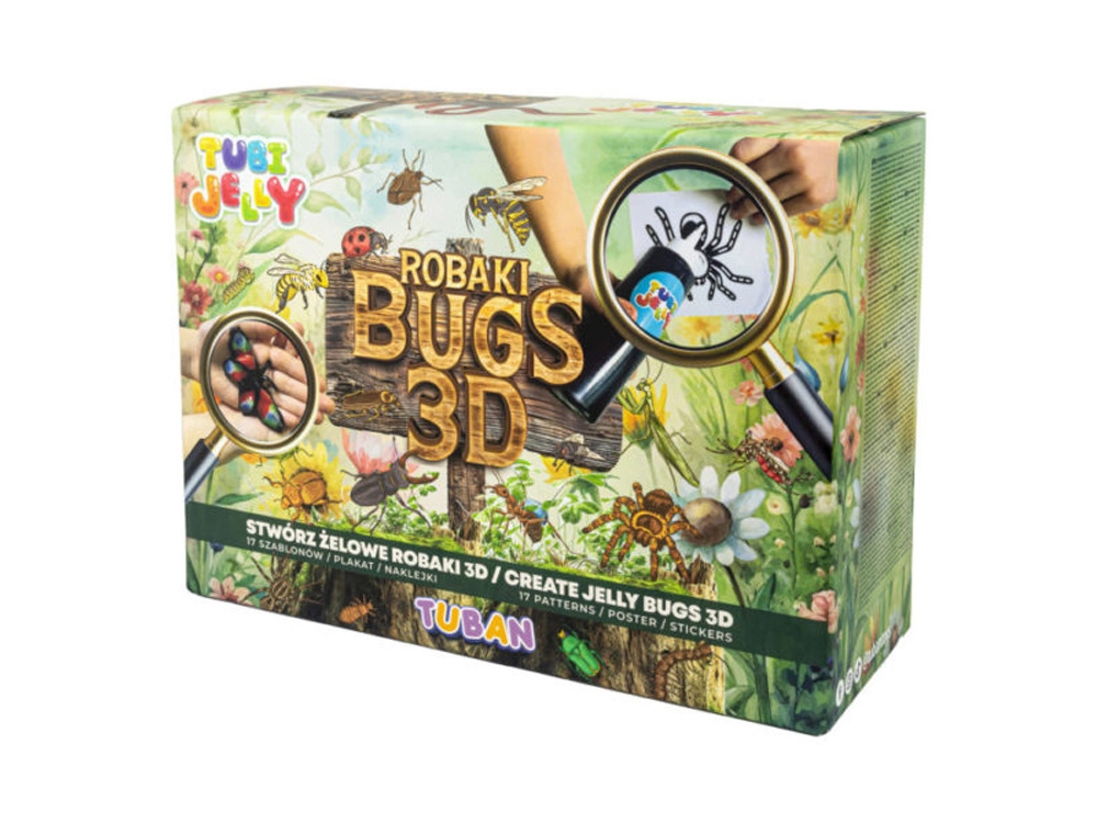 Descubre la magia de crear con Tubi Jelly Insectos 3D. Utiliza las 17 plantillas para elaborar insectos de gel sencillos y creativos. En el paquete también encontrarás una lámina transparente para diseñar tus propios insectos. Un activador especial transforma el gel líquido en una figura sólida.