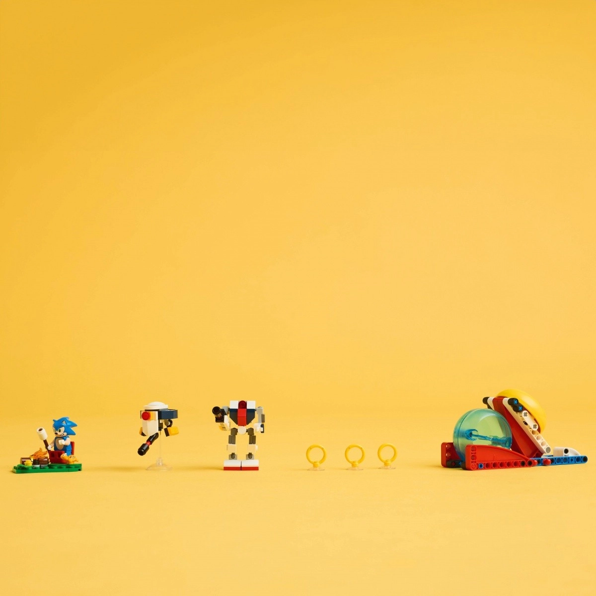 Con este set interactivo y totalmente equipado, los niños pueden contar historias sobre Sonic y su lucha contra los robots, relajarse junto a la hoguera o recoger anillos dorados para rescatar a Tocky. Al combinarlo con otros sets de LEGO Sonic, podrás crear aventuras aún mayores.