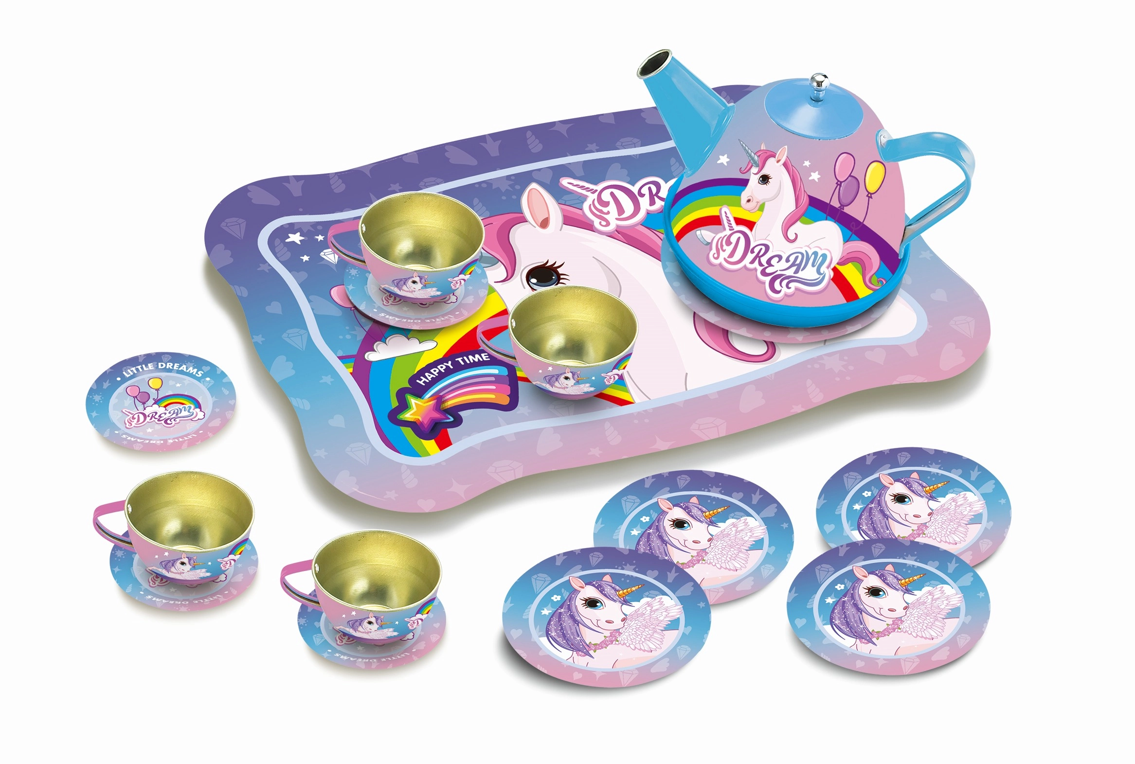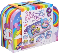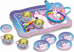 Este estiloso juego de té con diseño de unicornio aporta diversión a cualquier juego infantil de casa. Gracias a su sólida fabricación en metal, resiste incluso el servicio entusiasta de cada día. El colorido maletín con asa permite transportar y guardar fácilmente todas las piezas en un solo lugar.