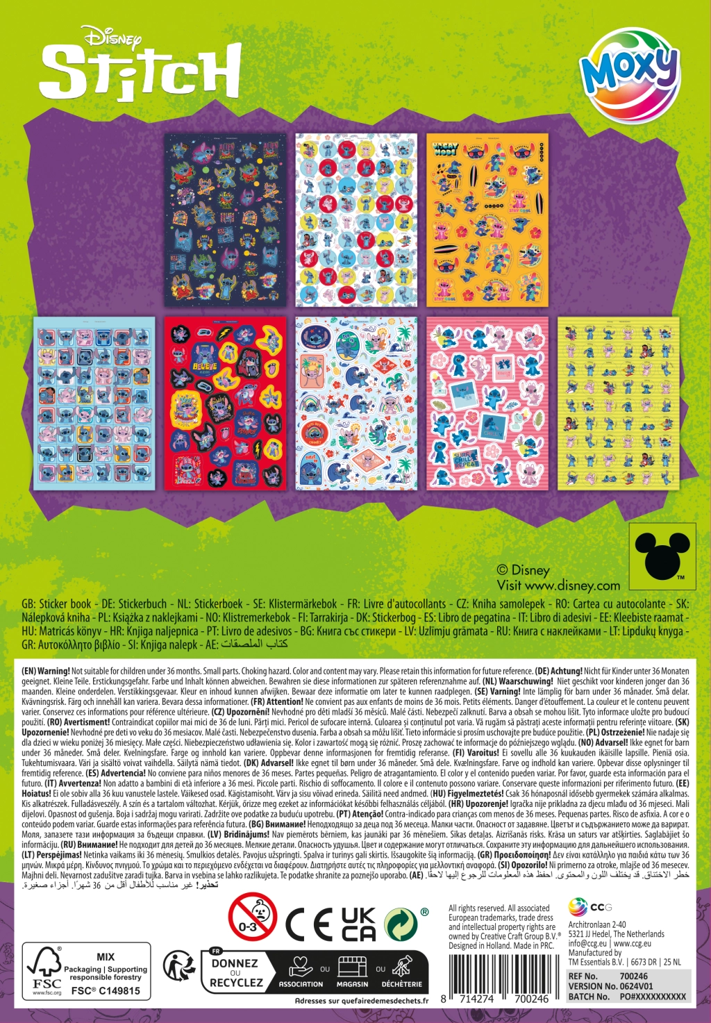 Descubre la diversión con un bloc lleno de pegatinas coloridas y brillantes con el motivo de Stitch. En ocho páginas en formato A5 encontrarás montones de pegatinas para decorar cuadernos, dibujos y tus propias creaciones. Ideal para niños creativos a partir de 3 años y para la creación del día a día.