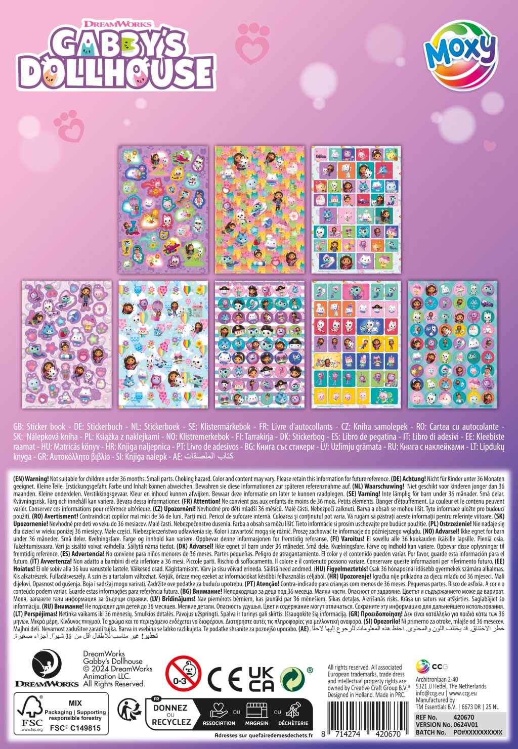Descubre la magia de crear con las pegatinas brillantes de la Casa Mágica de Gabby. Cada hoja está llena de personajes coloridos y motivos mágicos que aportan un toque especial a cualquier cuaderno, álbum o regalo. Gracias al práctico formato A5, las pegatinas se transportan fácilmente y son ideales para llevar de viaje.