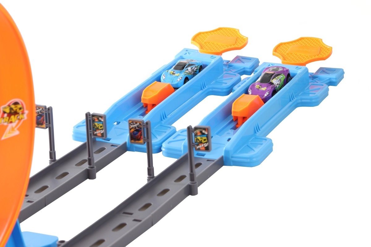 Esta pista de carreras infantil ofrece diversión y competición sin fin. La doble pista con carriles paralelos permite carreras directas de dos cochecitos a la vez, mientras que los 4 niveles de lanzamiento ajustables garantizan siempre la dosis adecuada de velocidad. Gracias a los bucles inteligentemente diseñados y a los soportes estables, los cochecitos se deslizan por la pista creando pasadas espectaculares.