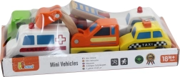 Descubre un divertido set de vehículos de madera para los más pequeños: taxi, ambulancia, excavadora, coche de policía, camión de bomberos y camión de carga. Gracias a sus formas redondeadas y a su diseño resistente, son ideales para niños a partir de 18 meses. Fomentan el desarrollo de la motricidad fina, la imaginación y las habilidades de juego en las aventuras del día a día.