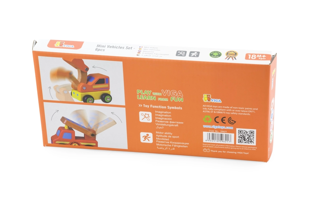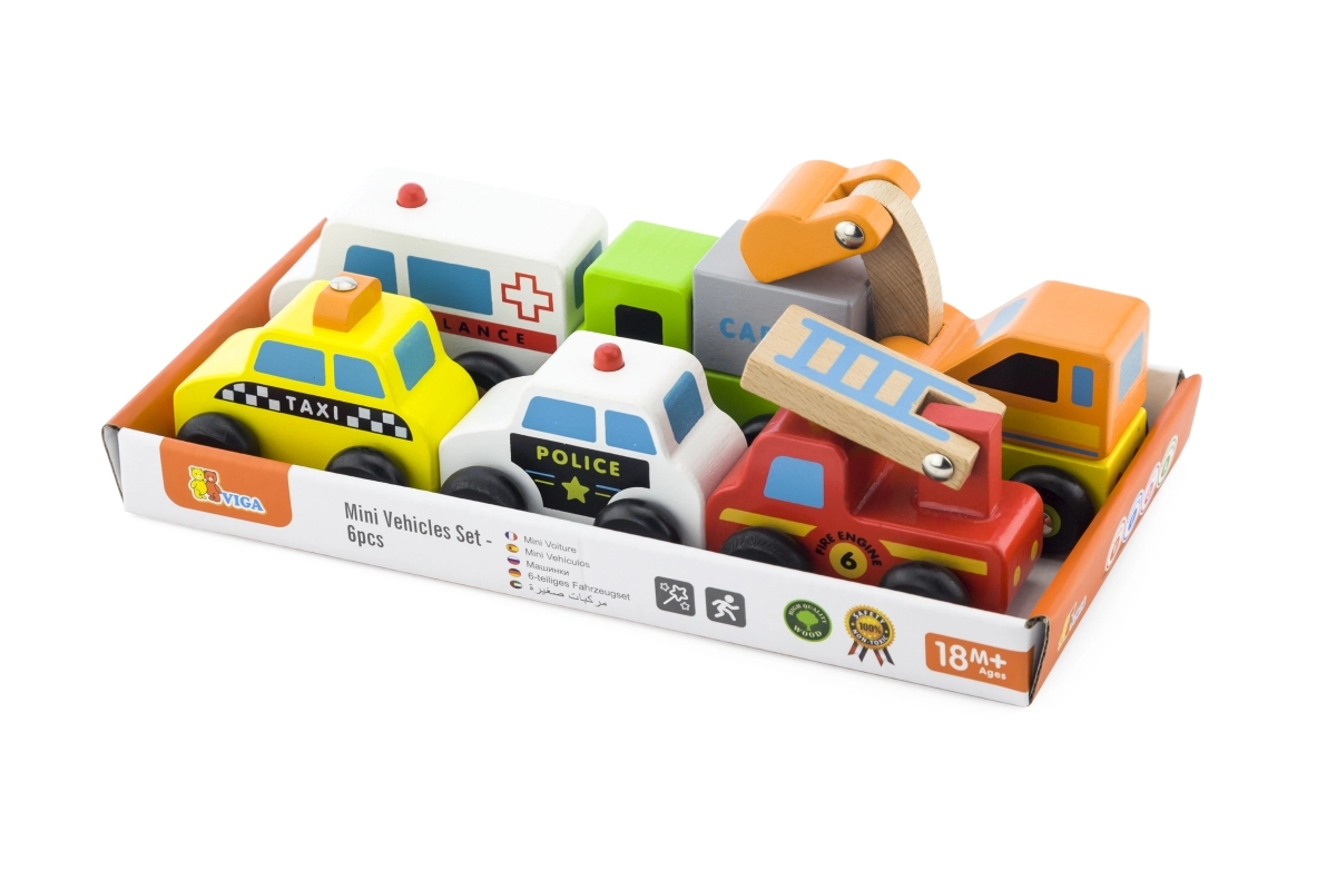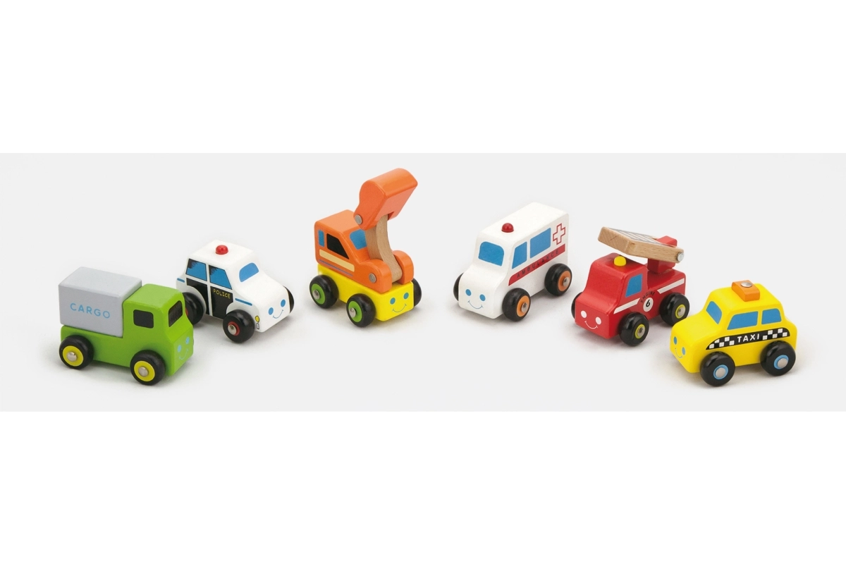 Este colorido set de 6 cochecitos de madera ofrece a los niños posibilidades de juego infinitas: desde misiones de rescate hasta la obra. Cada vehículo está fabricado con madera de alta calidad, superficie lisa y bordes seguros para un agarre cómodo y seguro por manos pequeñas.