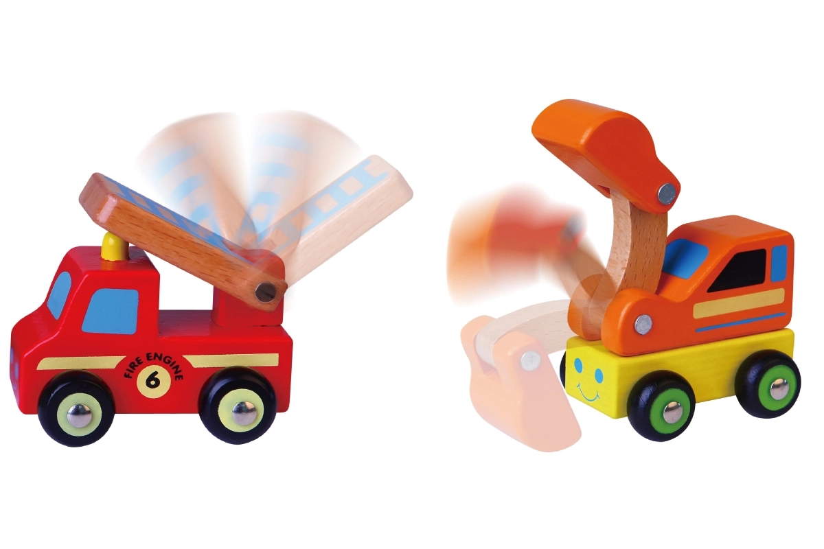 Del camión de bomberos a la excavadora: colores llamativos y formas fácilmente reconocibles estimulan la imaginación y el aprendizaje a través del juego.