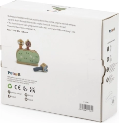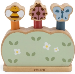 El jardín emergente de madera POLARB es una forma divertida de familiarizar a los niños con los colores, los animales y la lógica de acción–reacción. El niño presiona la cabeza de la figura y esta salta alegremente de la base: un principio sencillo que asegura muchas risas y entrenamiento de la concentración.