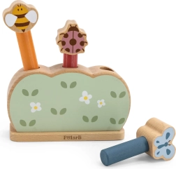 Una adorable juguete de madera para los más pequeños con motivos de abeja, mariquita y mariposa que desarrolla la motricidad fina, la coordinación ojo–mano y el principio de acción–reacción. Basta con presionar la cabecita de las figuras y los animalitos saltarán alegremente gracias al mecanismo de resorte. La madera de calidad, los colores no tóxicos y los tonos intensos hacen de este juguete un regalo ideal.