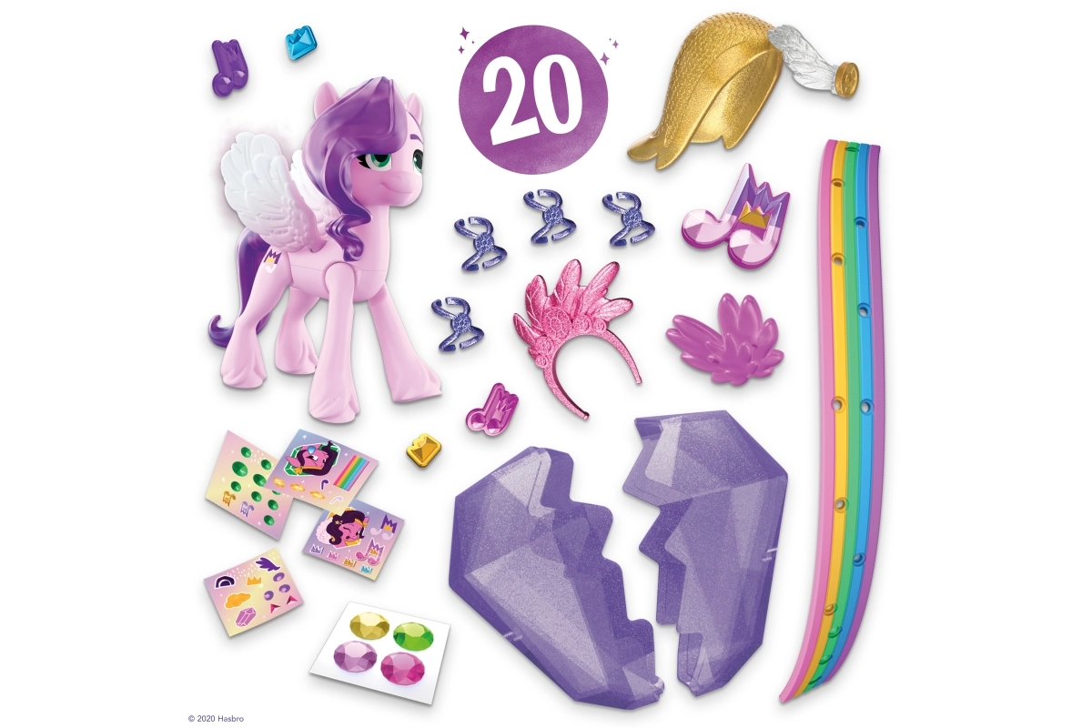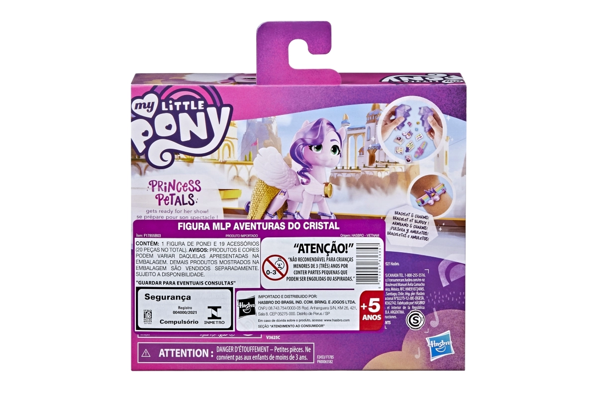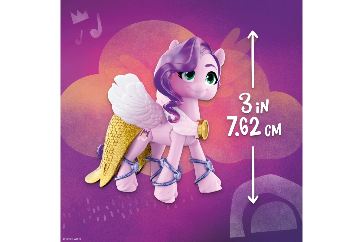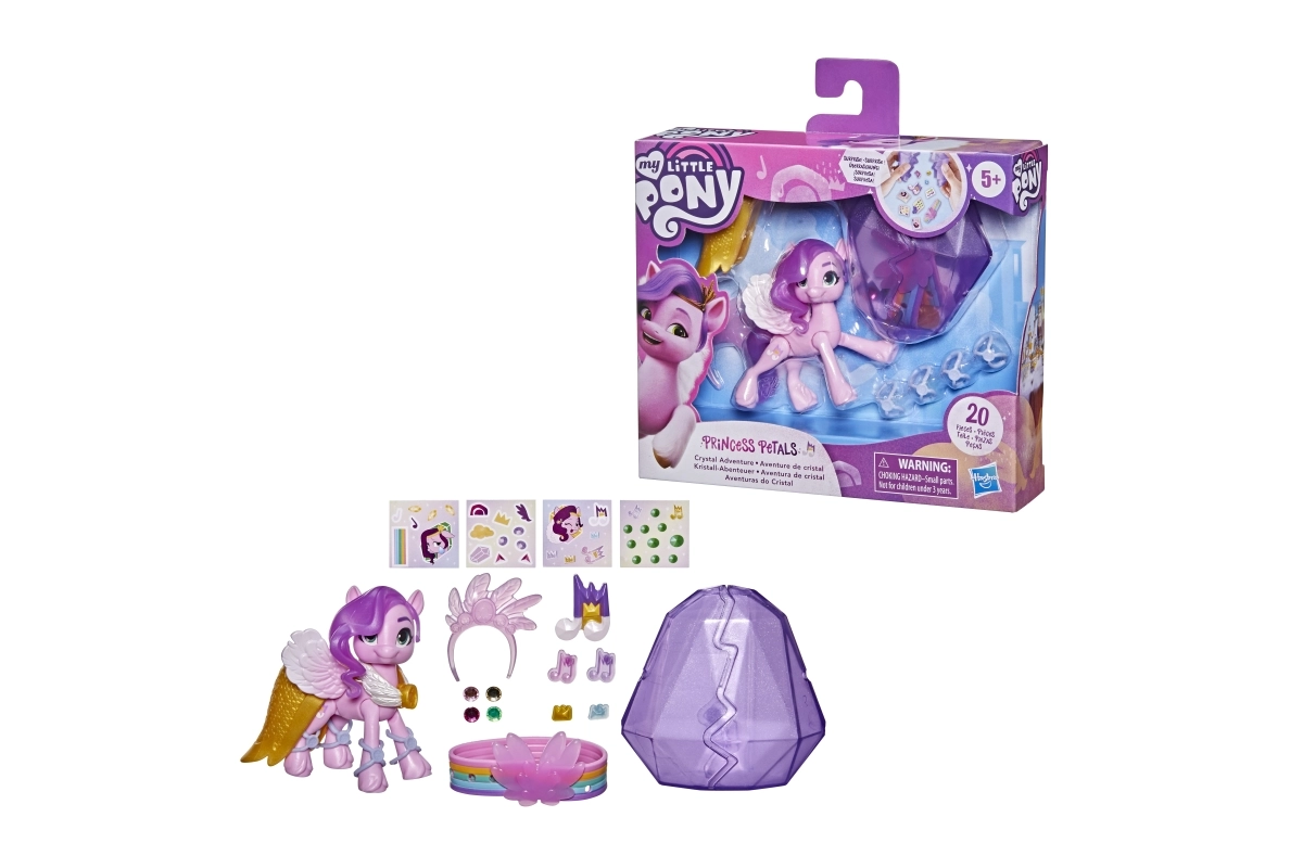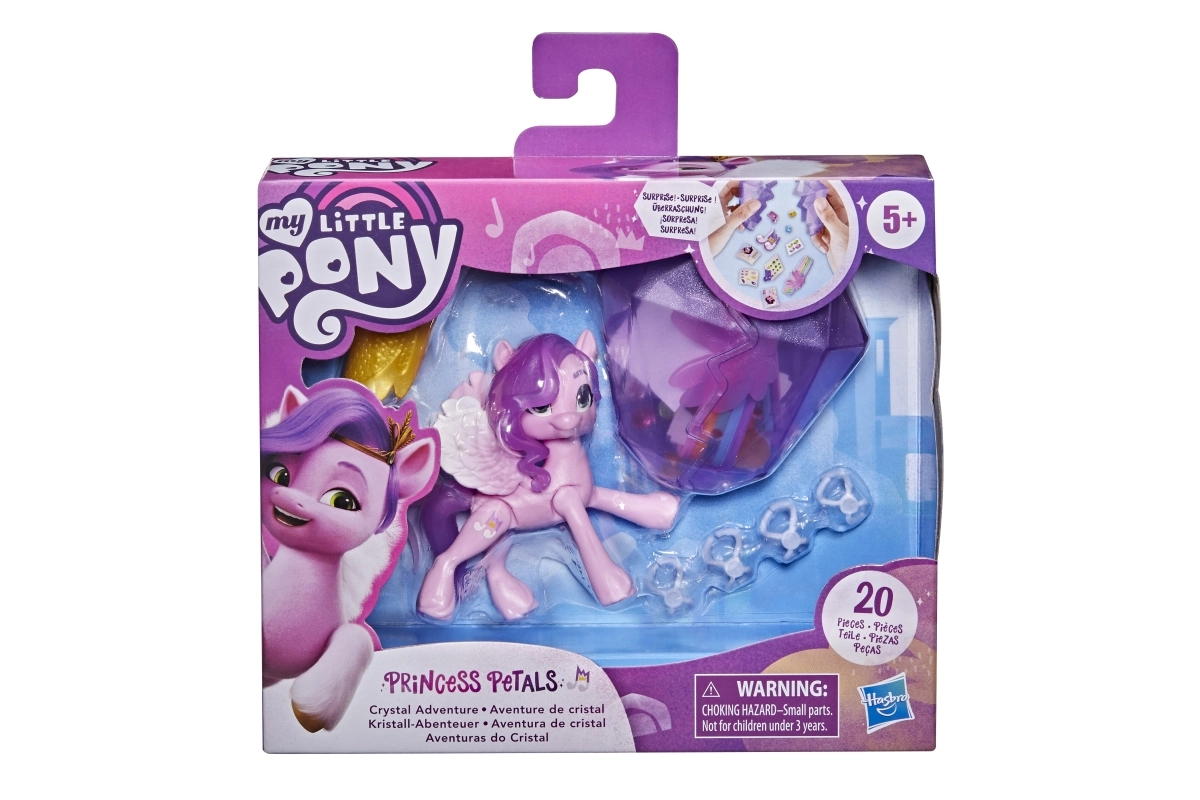 Sumérgete en el mundo de MY LITTLE PONY con la princesa Petals, una elegante estrella del pop de la serie Crystal Adventure. La figura articulada rosa de 3 pulgadas cuenta con un icónico cabello ondulado morado y un Cutie Mark detallado en forma de nota musical. Los niños disfrutarán abriendo el cristal reutilizable, que oculta una historia y sorpresas para seguir jugando.