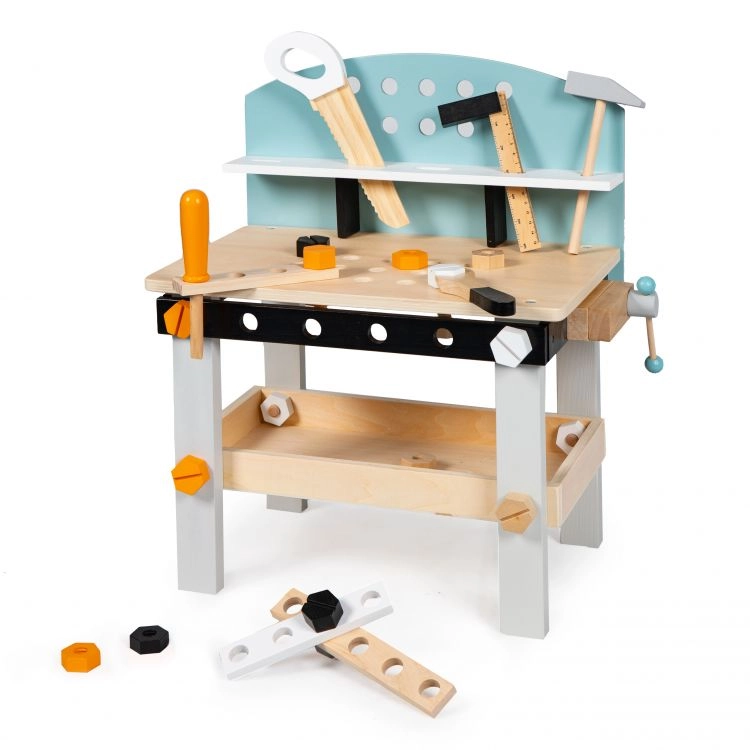 Con el taller de madera ECOTOYS, tu hijo se sentirá como un verdadero maestro. El set incluye 38 piezas que aportan la alegría de crear y trabajar a su propio ritmo.