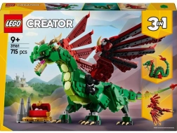 Con el set LEGO Creator 3 en 1 Dragón medieval, los niños entran fácilmente en el mundo de caballeros, castillos y criaturas míticas. El modelo principal presenta un dragón verde detallado con alas, cuello, mandíbula, patas y cola articulados, por lo que se puede colocar en poses de acción. También incluye un cofre del tesoro para historias aún más ricas.