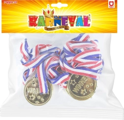 Regala a cada pequeño ganador la alegría del triunfo. Las medallas doradas con la inscripción WINNER y estrellitas tienen un aspecto representativo y, al mismo tiempo, son seguras y ligeras gracias al material PVC. Gracias a la cinta tricolor, se llevan cómodamente y se reparten con facilidad en concursos o eventos.