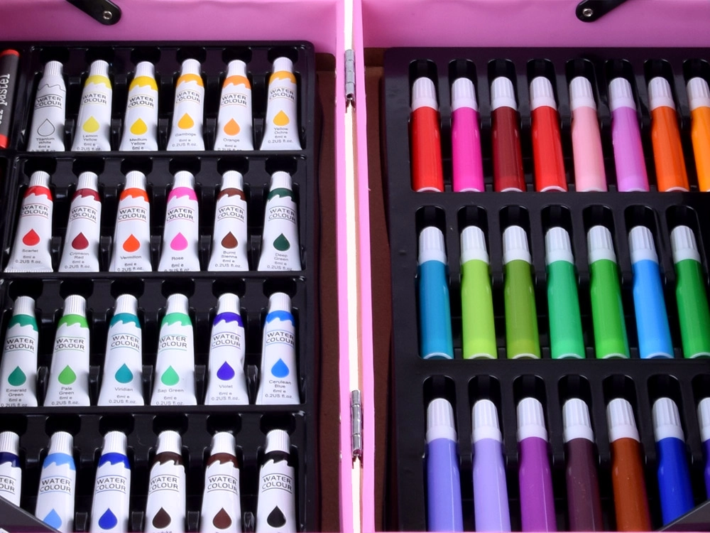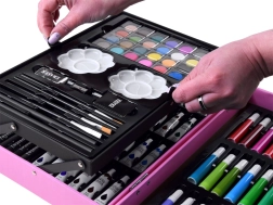 El set de arte es ideal para el juego creativo, permitiendo a los niños crear preciosas obras artísticas, tarjetas, retratos o dibujos para padres y abuelos. Este set ofrece largas horas de diversión creativa gracias a la variedad de herramientas, incluidos pasteles, rotuladores y pinturas.