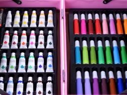 El set incluye pinturas, pinceles, lápices de colores y mucho más, ideal para crear diversas obras de arte.