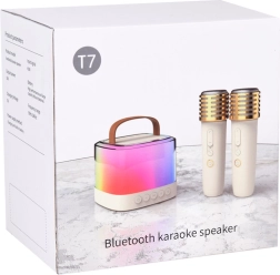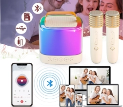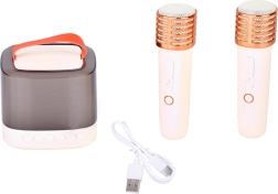 Disfruta de la diversión en cualquier lugar con el mini altavoz portátil inalámbrico con dos micrófonos. Este estupendo set permite cantar en pareja o en solitario gracias a sus dos micrófonos. Por sus dimensiones compactas, podrás llevarlo fácilmente al parque, de excursión o a casa de amigos y montar una gran discoteca. La posibilidad de conexión por bluetooth te permite cantar karaoke directamente desde tu teléfono.