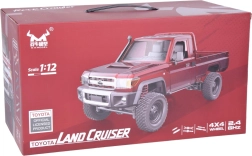 Modelo con licencia TOYOTA LAND CRUISER 4x4 a escala 1:12 que ofrece un diseño realista, tracción en las cuatro ruedas, control sensible 2,4 GHz y suspensión funcional para conducción off‑road. Construcción robusta, neumáticos todoterreno de goma, capó abatible y materiales de calidad garantizan larga durabilidad y gran diversión para niños y adultos.