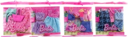 Dale un toque nuevo al armario de la muñeca BARBIE con este set que incluye dos conjuntos completos y accesorios. Ofrece el doble de diversión al estilizar, la posibilidad de combinar y coordinar y un corte universal para la mayoría de las muñecas Barbie.