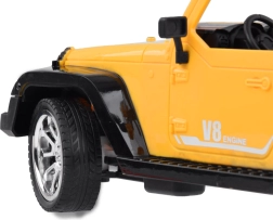 Carrocería abierta estilo jeep, llantas cromadas e interior detallado hacen de este modelo un atractivo todoterreno para niños y aficionados.
