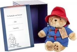 Encantador osito de peluche PADDINGTON en una elegante caja de regalo que alegrará a fans pequeños y grandes. Está hecho de peluche ultrasuave, con el típico abrigo azul con botones, sombrero rojo y etiqueta de agradecimiento. Ideal como primer juguete desde el nacimiento y también como artículo de regalo para la habitación infantil.