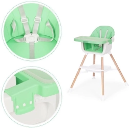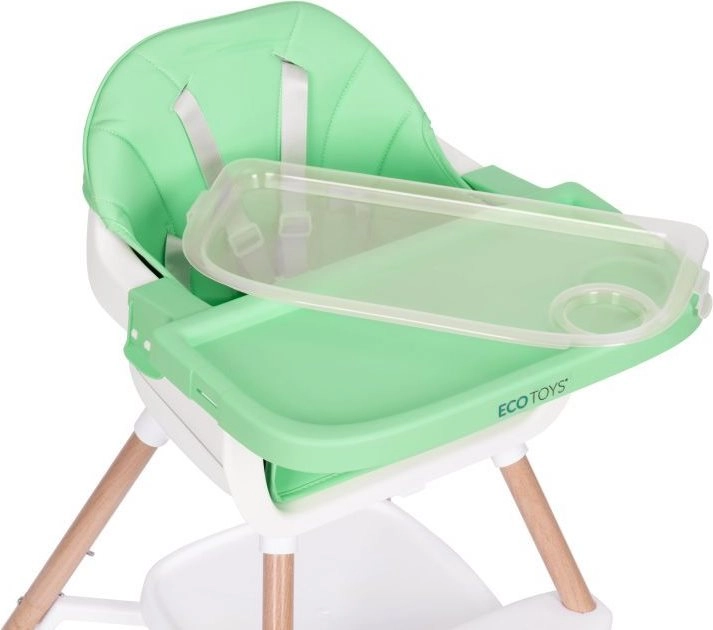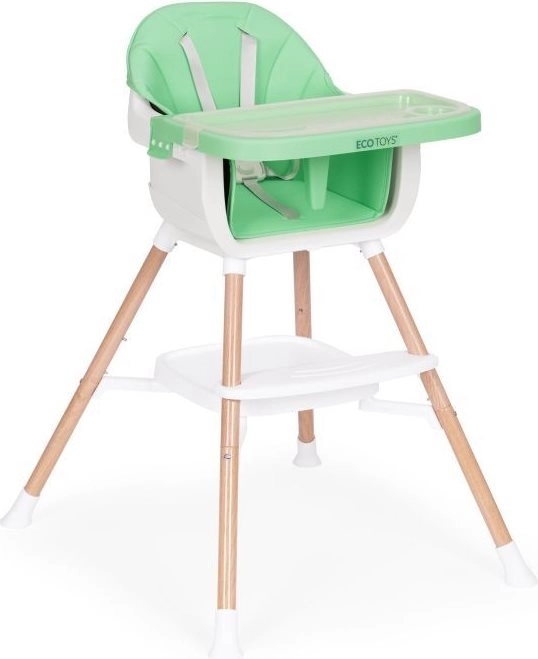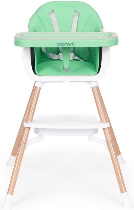 La práctica trona infantil 2 en 1 de ECOTOYS combina una trona alta y un elevador independiente para silla normal. Ofrece una estructura estable con patas metálicas, una bandeja doble fácil de limpiar apta para lavavajillas, arnés de seguridad de 5 puntos, topes antideslizantes y reposapiés. Ideal para niños de 6 a 36 meses con una capacidad de carga de 20 kg.