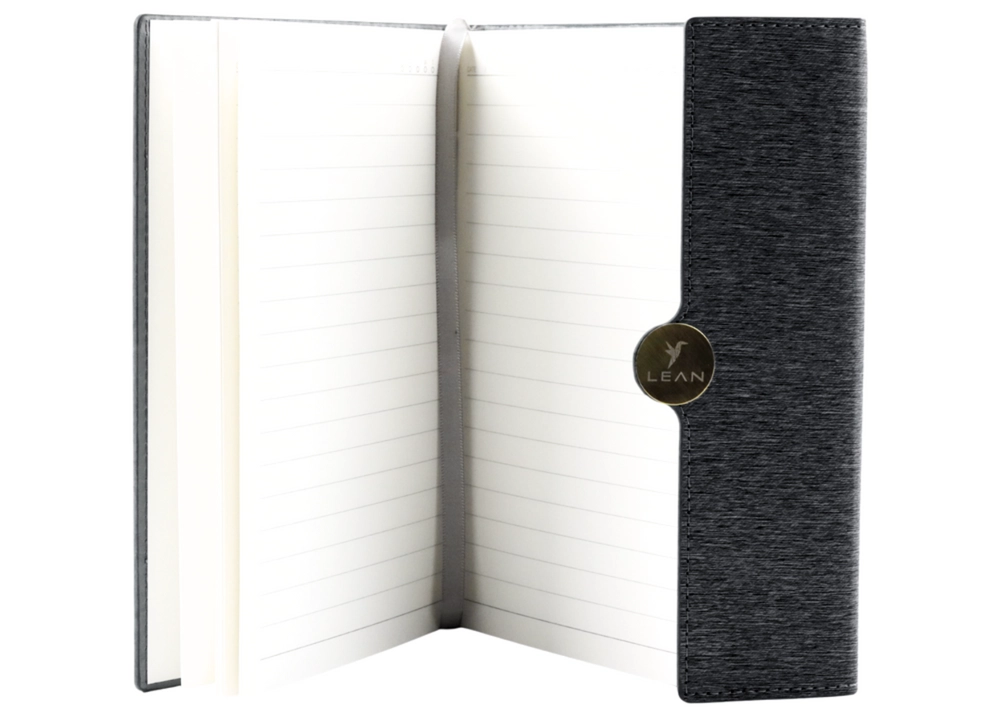 Elegante cuaderno de oficina con cierre magnético, una opción perfecta para uso personal y profesional. La encuadernación rígida y 95 páginas cremosas de alta calidad hacen de este cuaderno un accesorio funcional y con estilo.