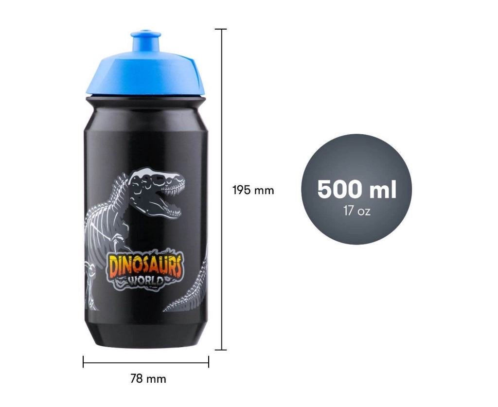 Elegante botella infantil para beber con motivo de Dinosaurs World y capacidad de 500 ml, ideal para la escuela, el deporte y las excursiones. Está hecha de plásticos blandos sin BPA, cumple con las normas europeas 2011/10, es reciclable, no provoca alergias y se puede lavar en lavavajillas.