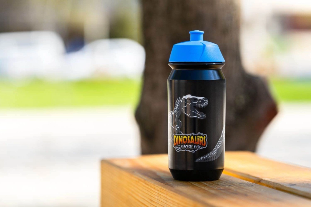 La popular botella infantil con diseño de huesos de dinosaurio y el texto Dinosaurs World encantará a los pequeños amantes de la prehistoria y, al mismo tiempo, garantizará una cómoda reposición de líquidos durante todo el día. El práctico diseño con tapón seguro facilita beber en los desplazamientos y en la escuela.