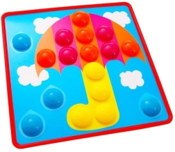 El mosaico creativo con clavijas es una excelente opción para niños curiosos. El set incluye clavijas de colores, una placa de plástico y plantillas con dibujos, en las que los niños insertan las clavijas según los colores o su propia imaginación. El juego fomenta el pensamiento creativo, el reconocimiento de colores y la motricidad fina.