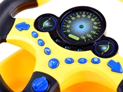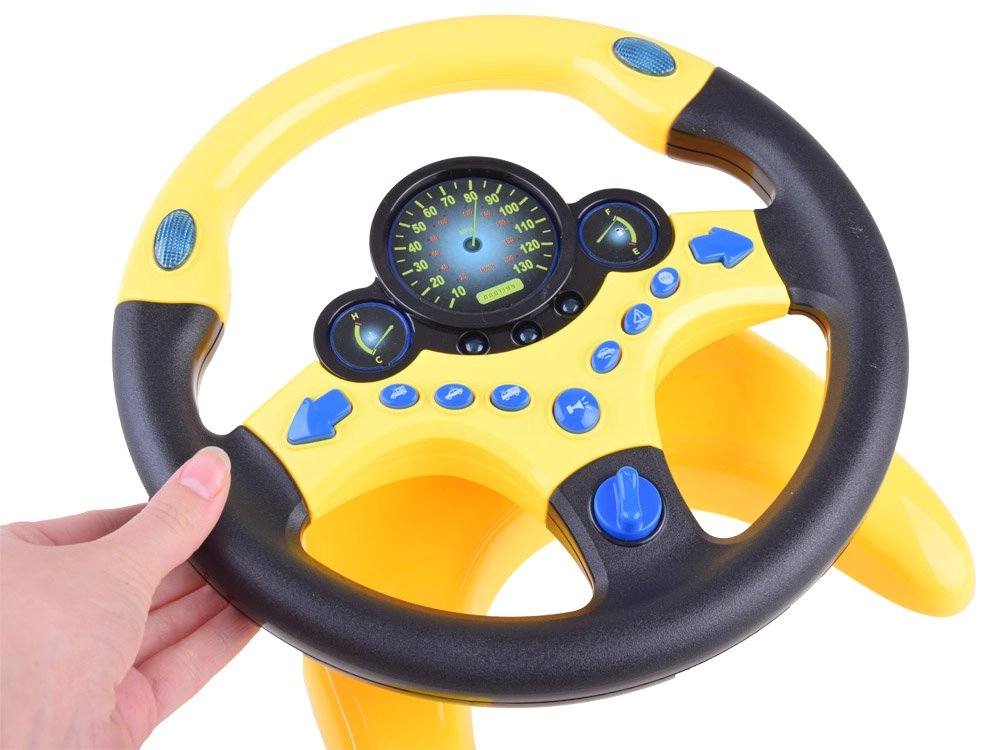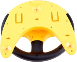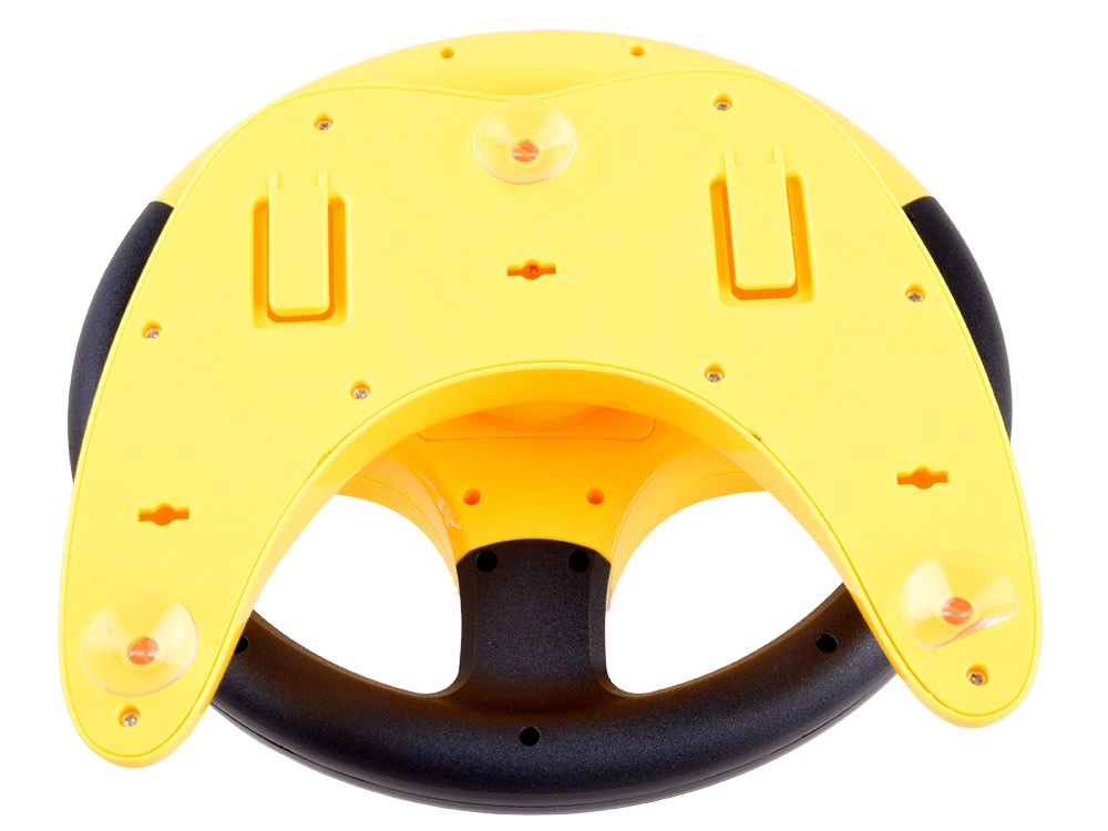 El volante está fabricado en plástico resistente, es ligero y tiene una forma ergonómica para las manos infantiles. Gracias a su base estable y a la fuerte ventosa, se fija fácilmente a una mesa, superficie lisa o ventana: ideal para casa y para los viajes.