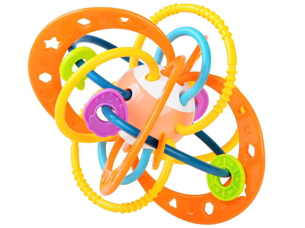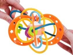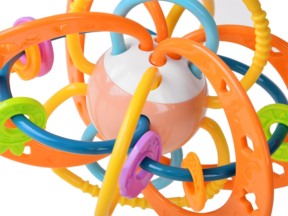 Ligero y seguro mordedor sensorial con lazos de colores entrelazados que favorecen la motricidad fina, calman durante la salida de los dientes e invitan a explorar diferentes texturas y formas. Todos los bordes son redondeados y los materiales son seguros para bebés desde 0 meses.