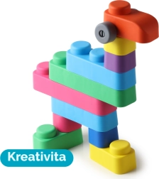 Descubre posibilidades infinitas de diversión con este juego de construcción blando Far Far Land, que incluye 25 bloques de colores y 16 ruedas, todo fabricado con un material seguro.