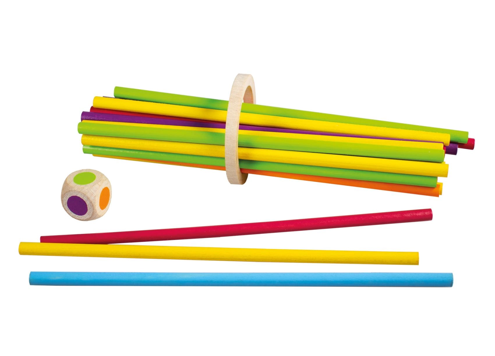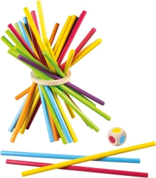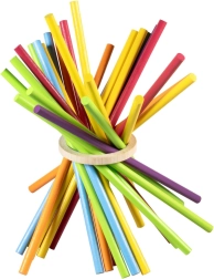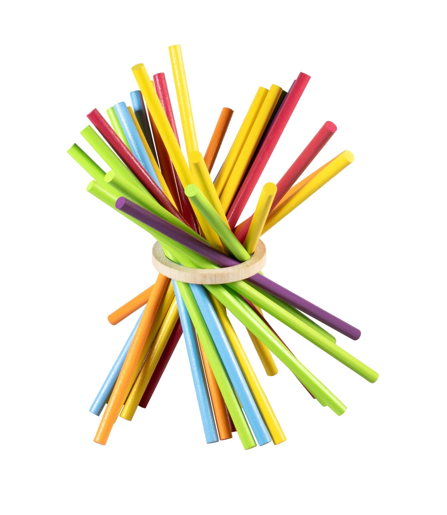 Sacar los palitos con cuidado sin que caiga el aro refuerza la coordinación, la concentración y el agarre delicado: ideal para niños y adultos.