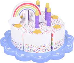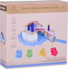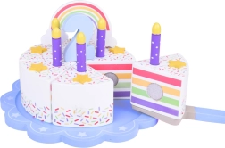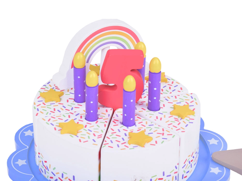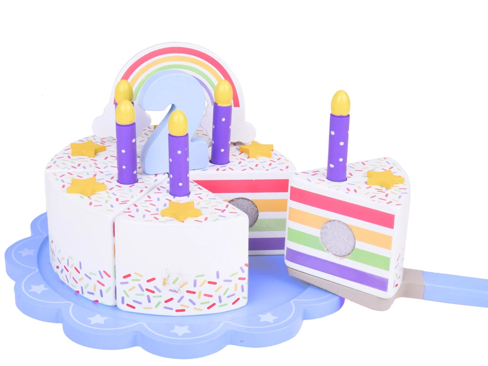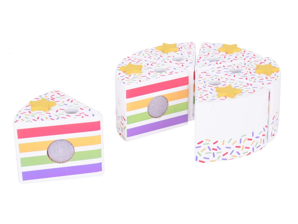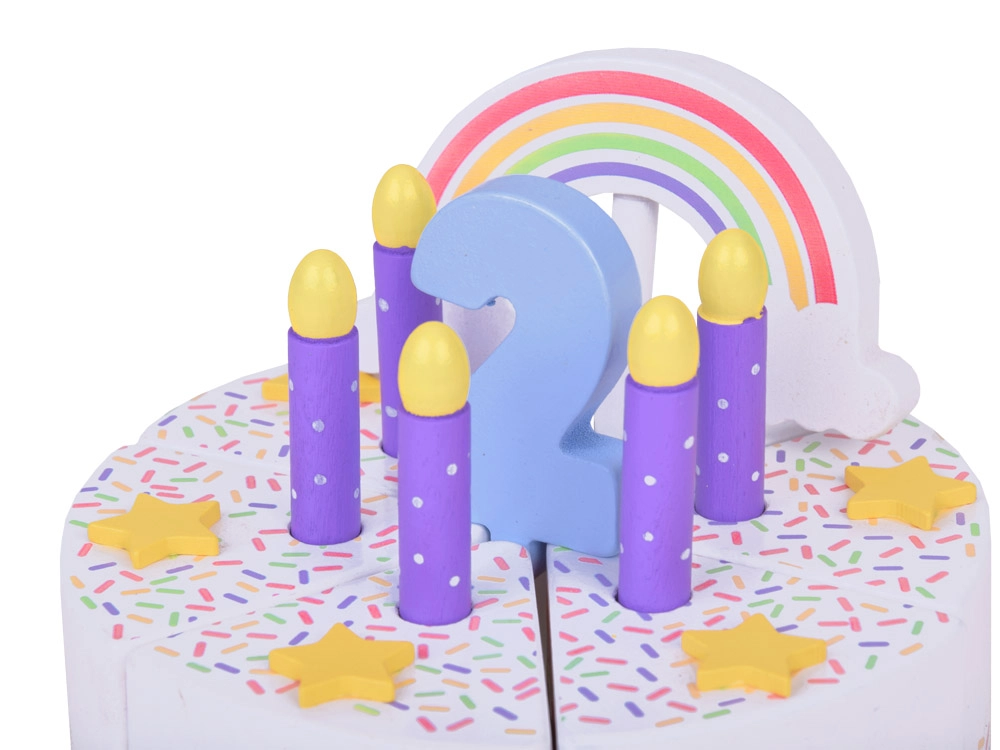Te presentamos la tarta de cumpleaños arcoíris de madera, que ofrece horas interminables de diversión para los niños. Esta tarta lúdica con seis piezas de colores es como un dulce de verdad que los niños pueden cortar y volver a unir.